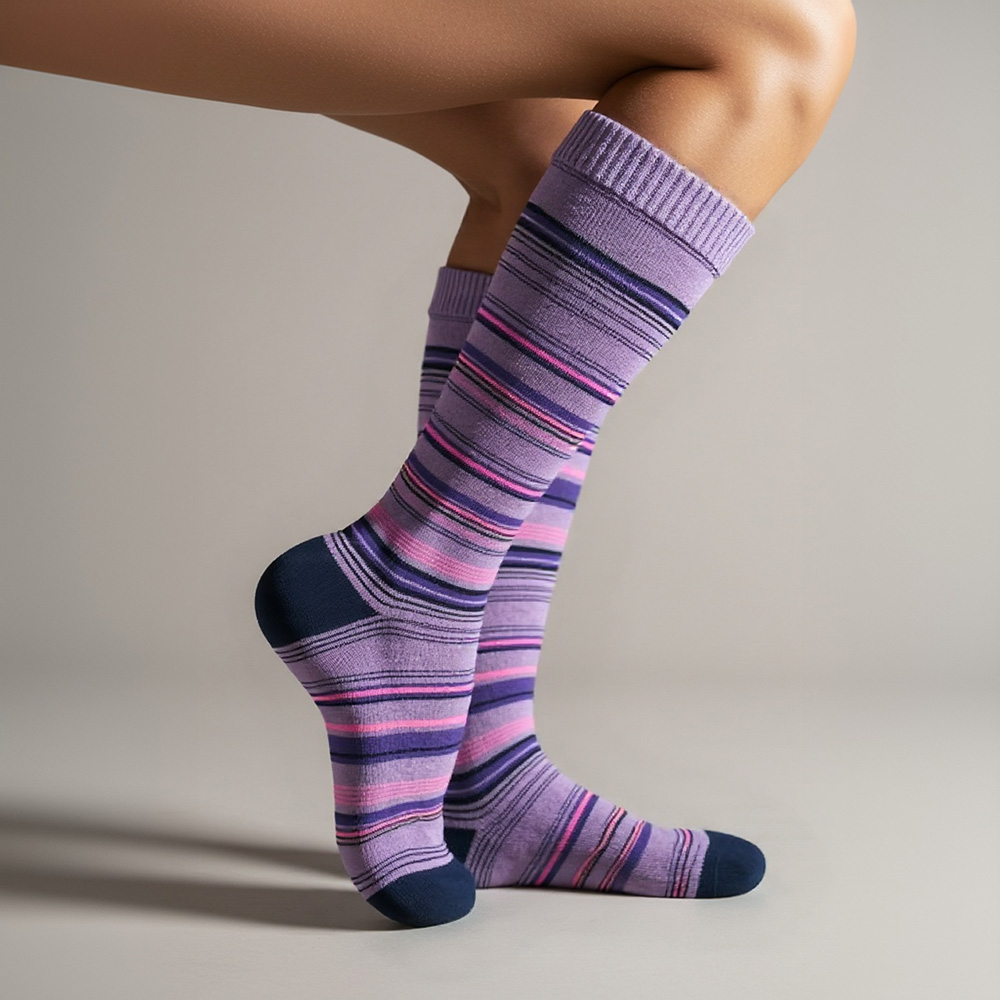 Κάλτσες Διαβαθμισμένης Συμπίεσης Με Ρίγες Μωβ 18mm 22Hg – BNZ 2855